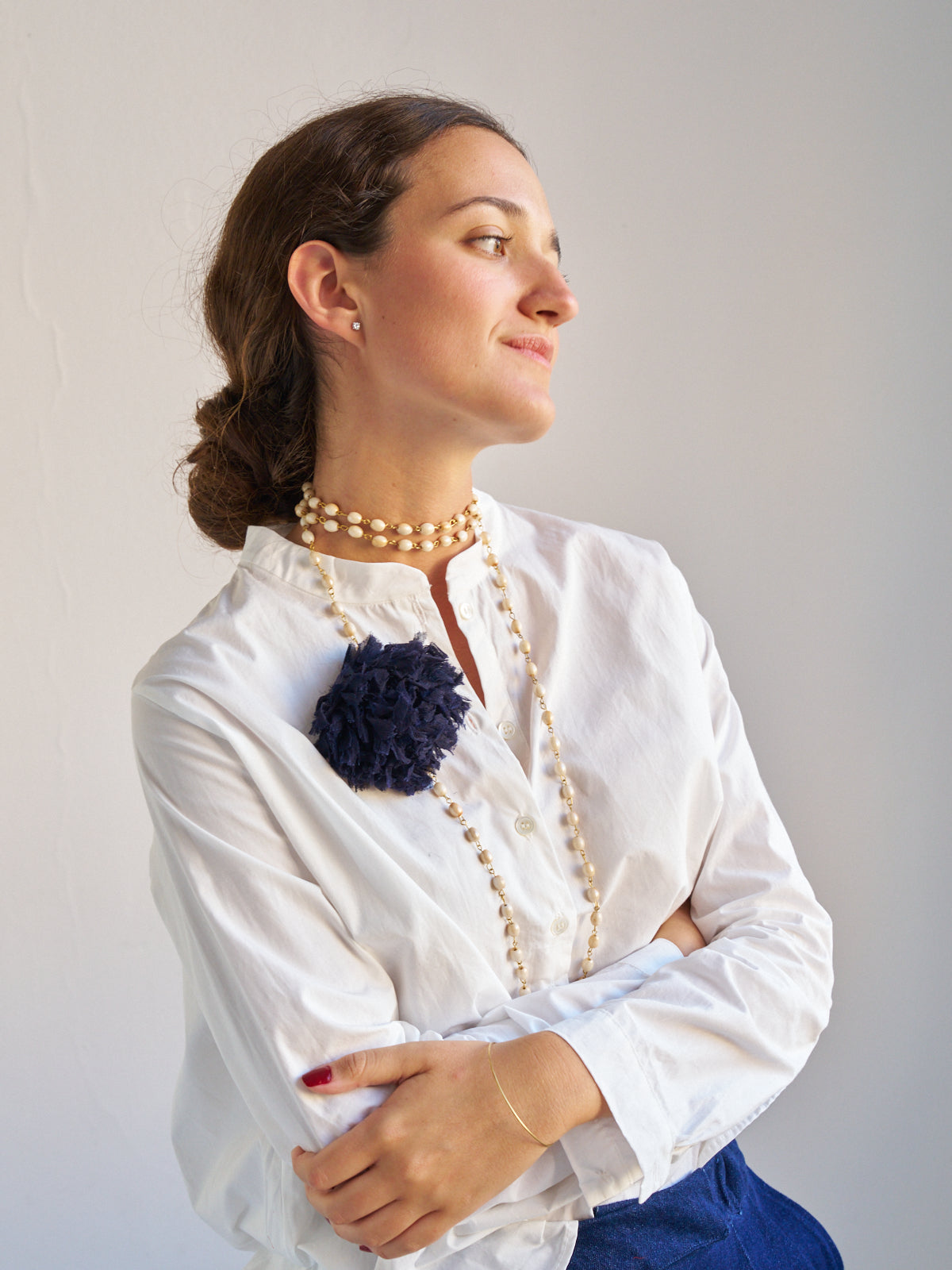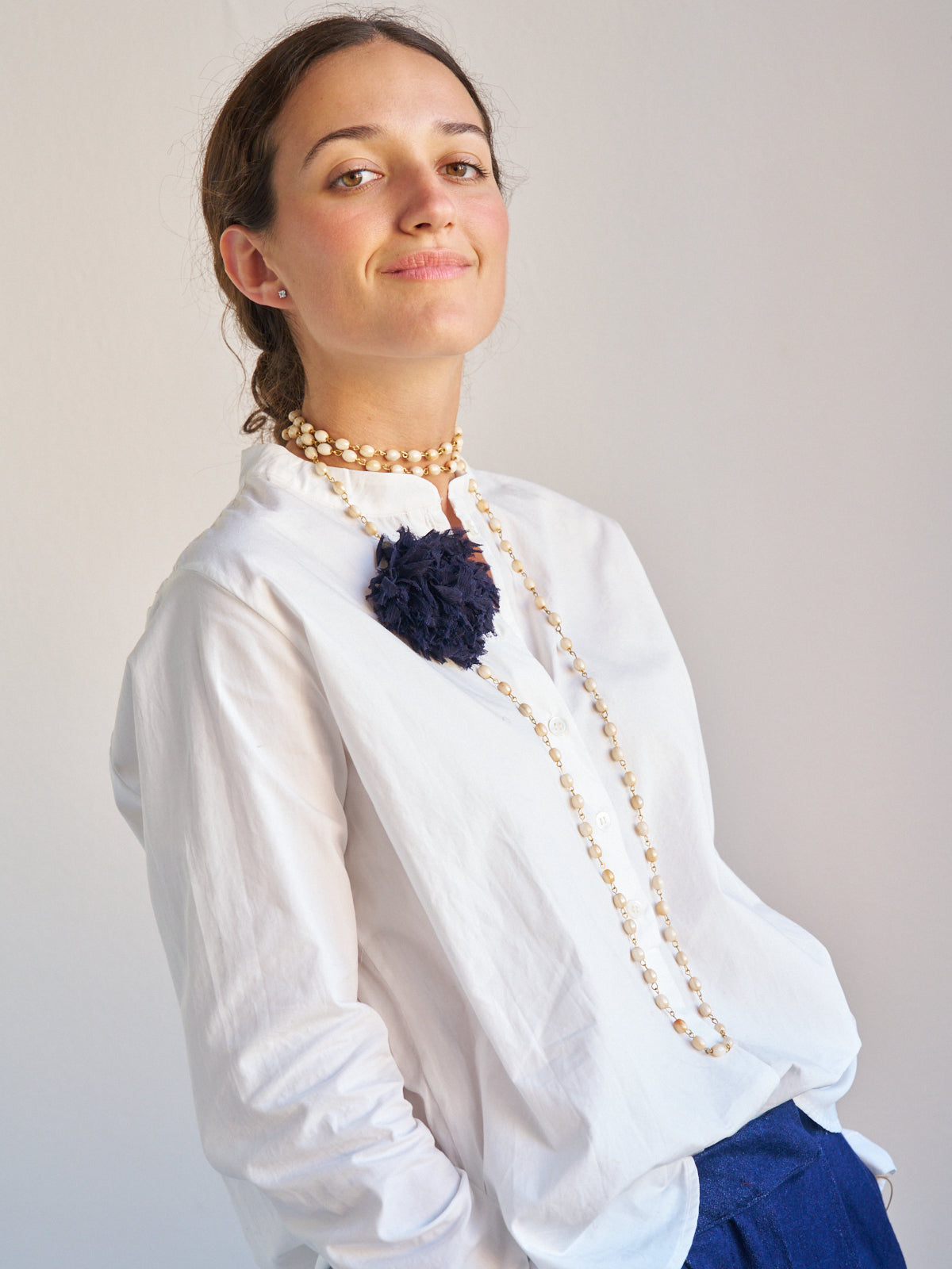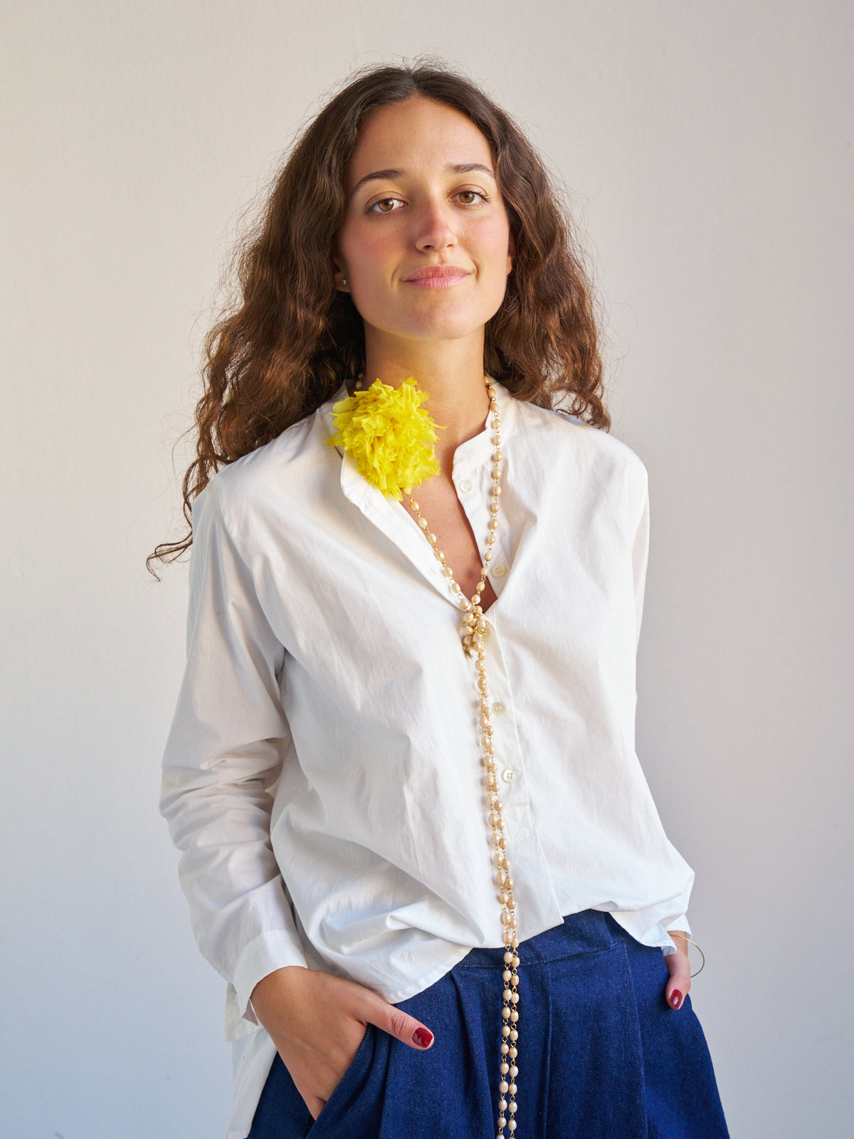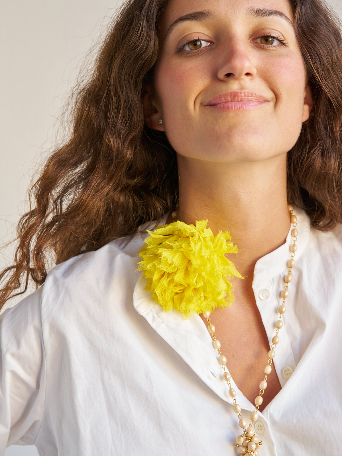 Nuestro collar más icónico en movimiento ! Vuelve una de nuestras primeras piezas, el collar de cuentas de cristal efecto perla con flor de gasa ! Flor en seis colores: amarillo, rojo, morado, verde, marino y negro ! Lo puedes llevar de mil maneras, fue nuestra pieza más vendida durante años y estamos felices de tenerlo de vuelta !